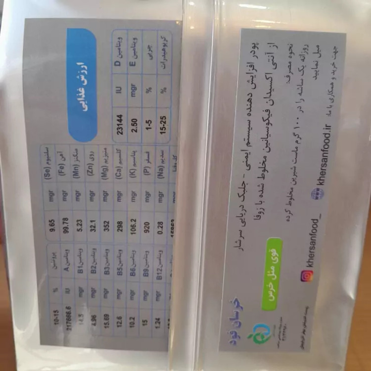 جلبک دریایی اسپیرولینا مخصوص افزایش دهنده سیستم ایمنی، سرشار از آنتی اکسیدان فیکوسیانین، بسته بندی با دستگاه تمام اتوماتیک و استاندارد حاوی ۲۰ ساشه ترکیب اسپیرولینا و زوفا برند خرسان، این بسته با ترکیب انحصاری خود و اثر گذاری فوقالعاده منجر به افزایش سیستم ایمنی شما عزیزان میشود.